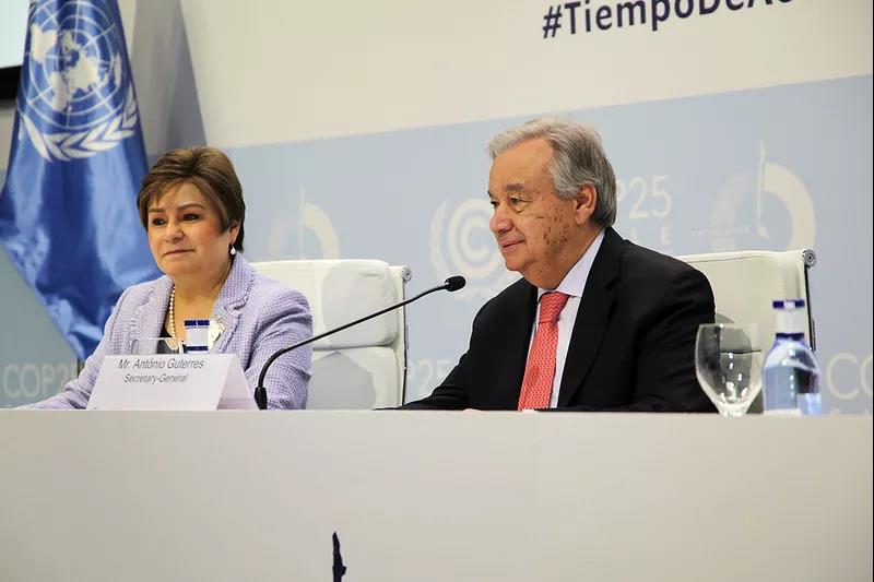 秘书长安东尼奥·古特雷斯和执行秘书帕特里夏·埃斯皮诺萨出席第25届缔约方会议第1天大会