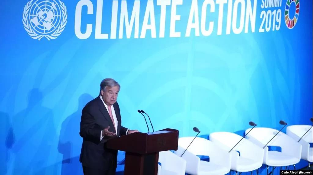 9月23日,联合国秘书长安东尼奥·古特雷斯在纽约市联合国总部举行的气候行动峰会开幕式上发表讲话